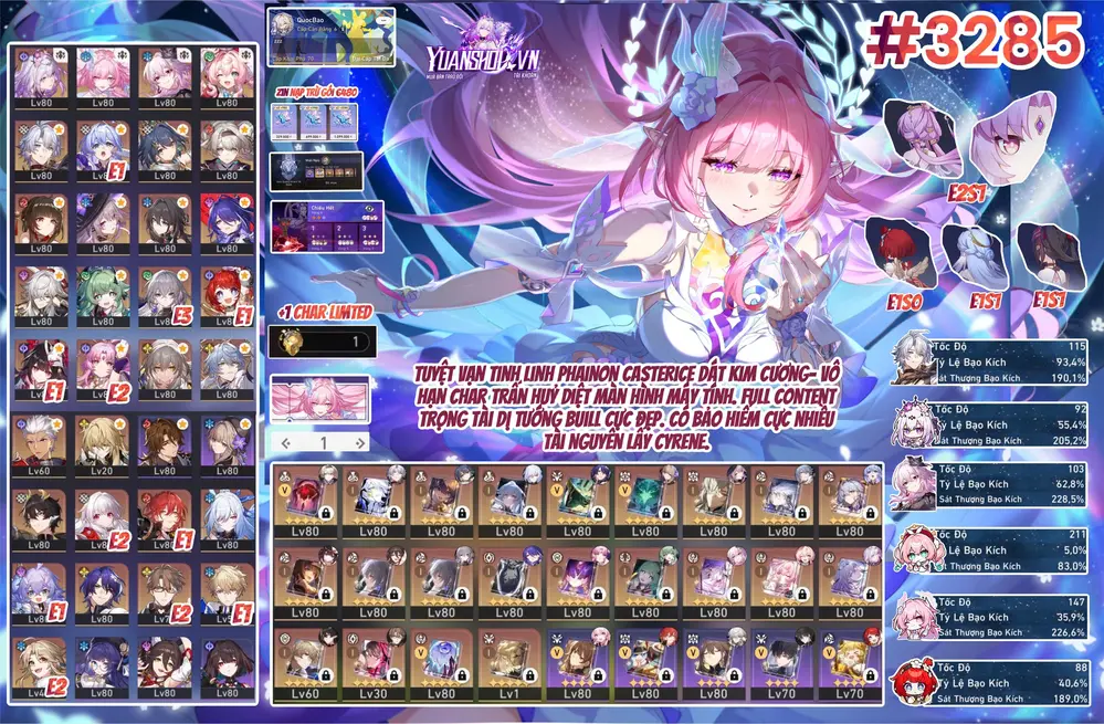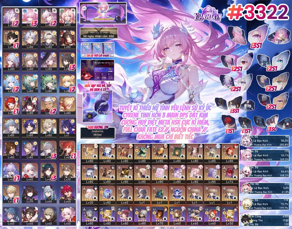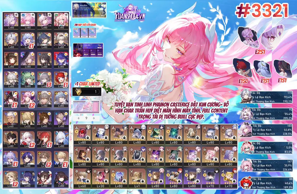 [ VZ_086 SIÊU PHẨM WAIFU ] DIALYN + YAO TRẤN + HARU + LYCAON + GRACE + SOLDIER. CÒN NHIỀU QUEST / EVENT !!