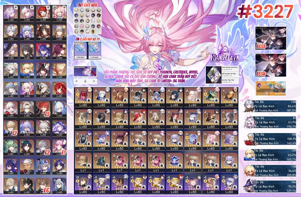 [ #3227 ACCOUNT SIÊU KHỦNG VÔ HẠN CHAR TRẤN TEAM NÀO CŨNG DÁT KIM CƯƠNG- MAIN NAM CỰC HIẾM ]
