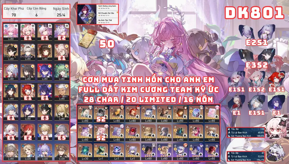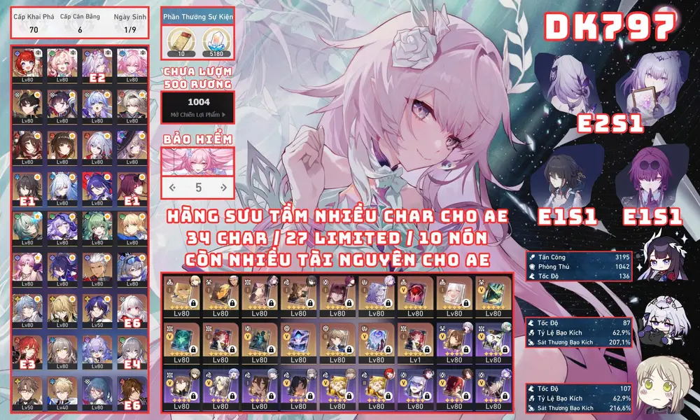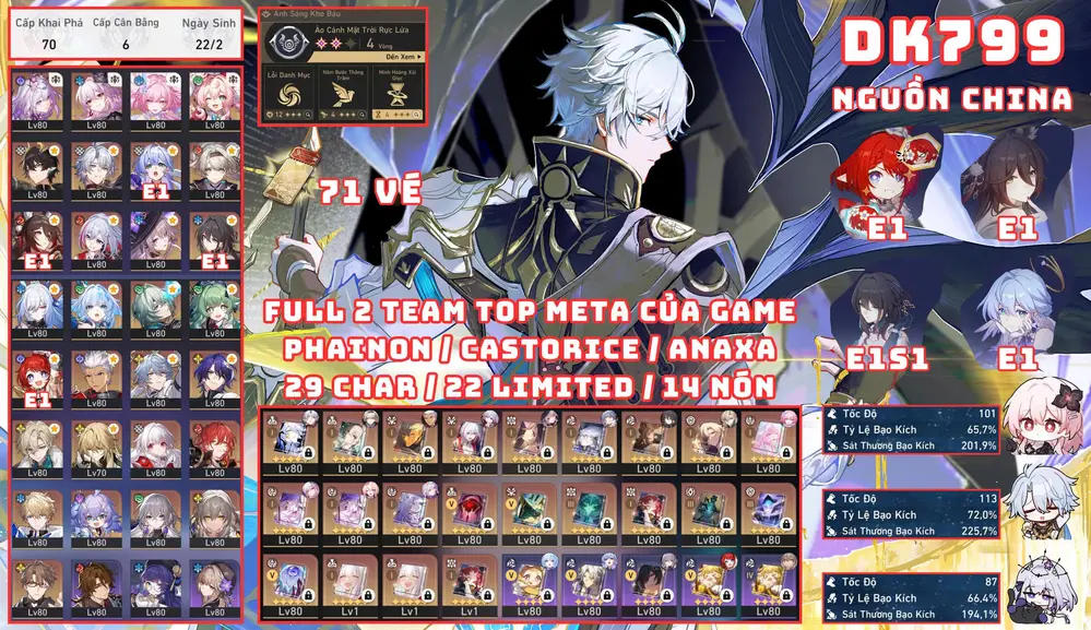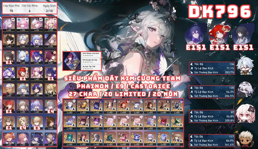 [ #3325 TUYỆT PHẨM TỬ LONG DIỆT THẾ / MƯA TINH HỒN KÈM DÀN TRẤN CỰC KHỦNG! ] CASTORICE E1 TRẤN + HYACINE TRẤN + CYRENE + TRIBBIE TRẤN + PHAINON TRẤN + SUNDAY TRẤN + FEIXIAO TRẤN + ROBIN E1 TRẤN + SPARKLE E1 TRẤN + RAPPA TRẤN + JADE TRẤN + RUAN MEI E1 TRẤN + JINGYUAN E2 TRẤN + AVENTURINE + SEELE + FU XUAN + BLADE E1 TRẤN + IL TRẤN + BRONYA E3S2 + ... 5 TRANG BANNER TRẤN. CÂN CONTENT ENDGAME!