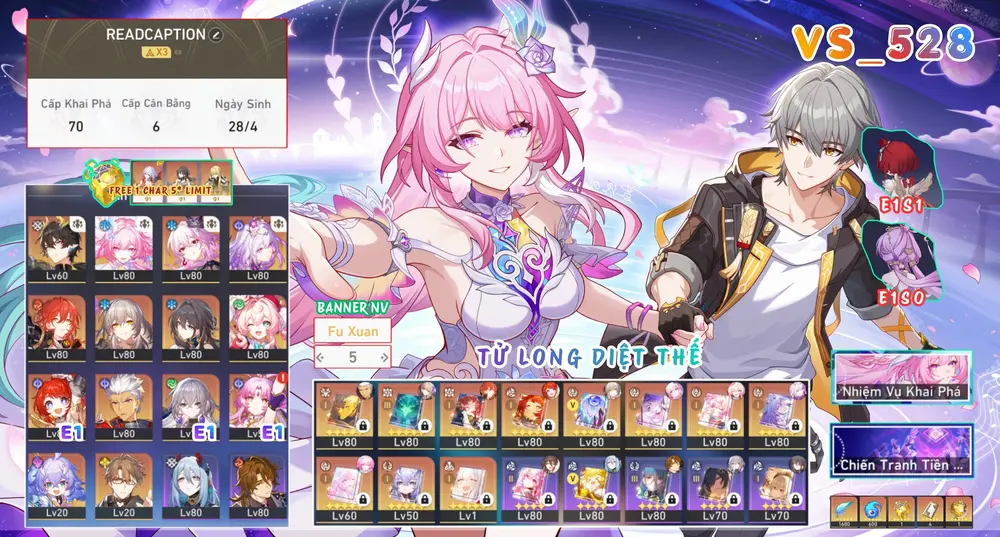 [ VS_528 TUYỆT PHẨM TỬ LONG DIỆT THẾ / FREE 1 CHAR 5* LIMIT! ] CASTORICE TRẤN + CYRENE TRẤN + EVERNIGHT TRẤN + HYACINE TRẤN + TRIBBIE E1 TRẤN + FU XUAN E1 + DAN HENG PT + ARCHER TRẤN + BRONYA E1 + WELT + RUAN MEI + HIMEKO. 5 TRANG BANNER LIMIT CÓ BẢO HIỂM. CÒN NHIỀU TÀI NGUYÊN CÀY!!